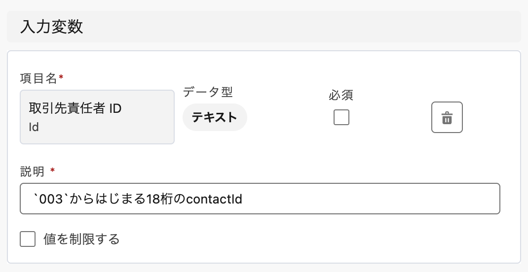 AIにSalesforce IDを正しく入力させるには、以下の記事を参照してください。
