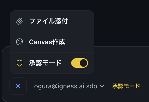 - トグルスイッチでON/OFF切替: 承認モードはワンクリックで有効・無効を切り替えられます
