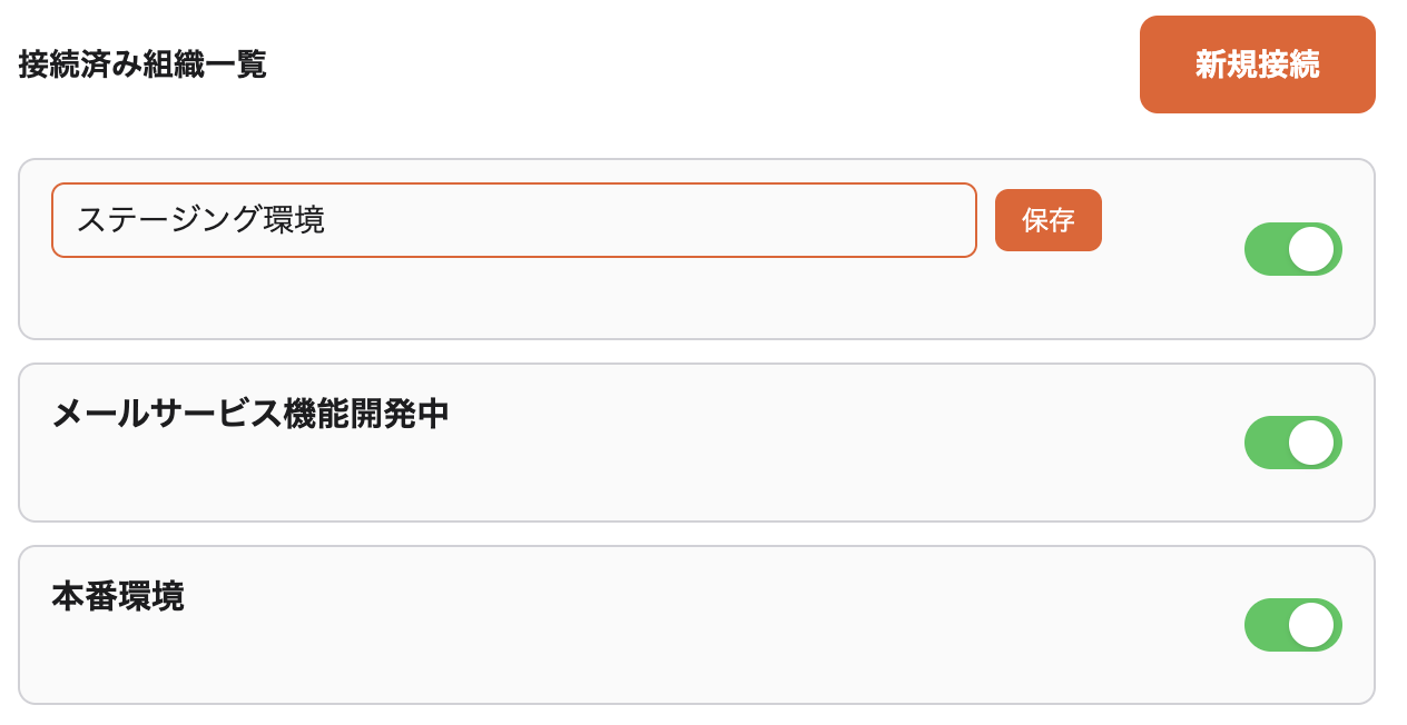 - ・設定したラベルは、画面上部のOrg切替セレクターにも即座に反映されます