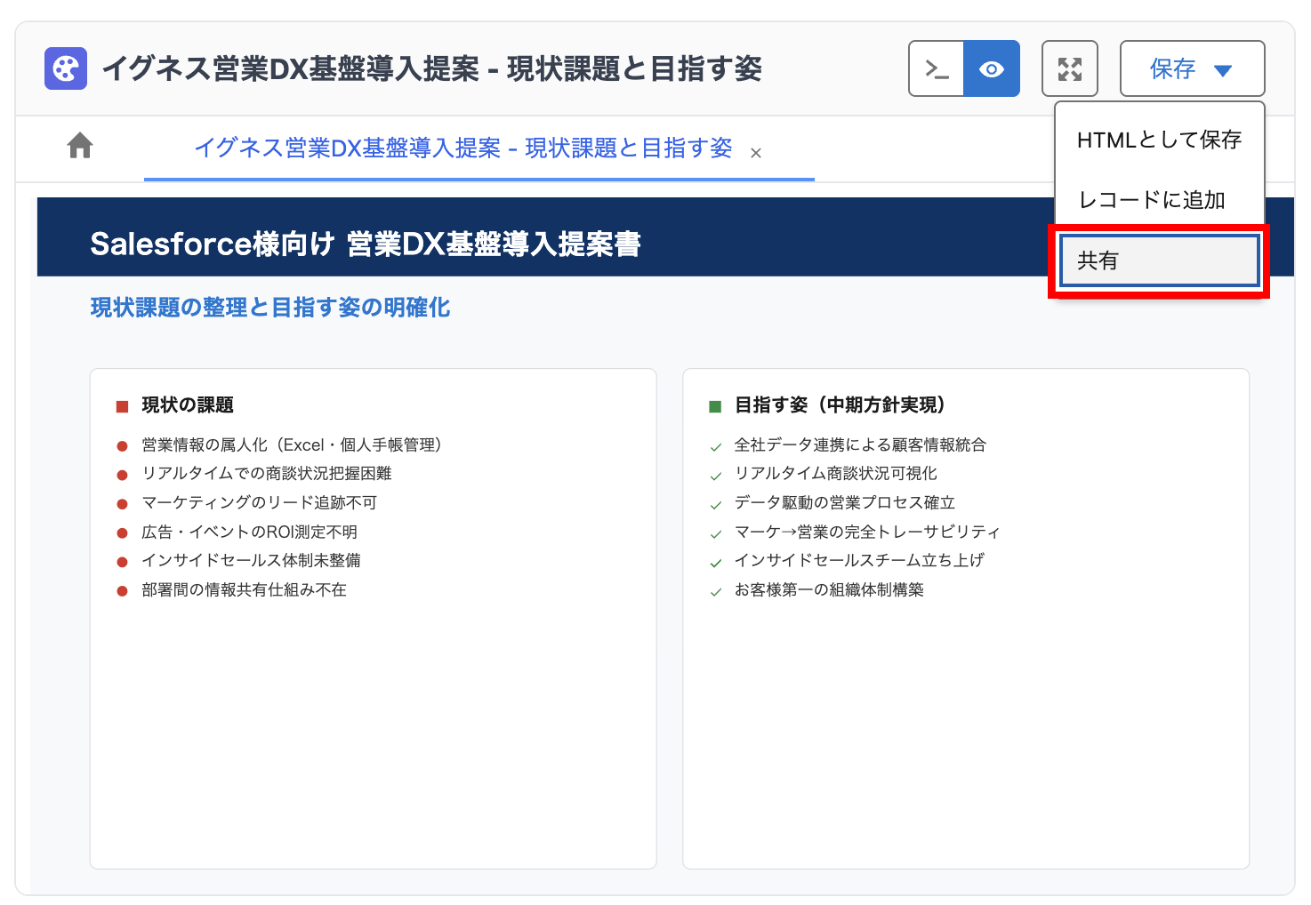作成したキャンバスは、キャンバス共有機能を使用することで組織外のユーザーに1クリックで共有することができます。