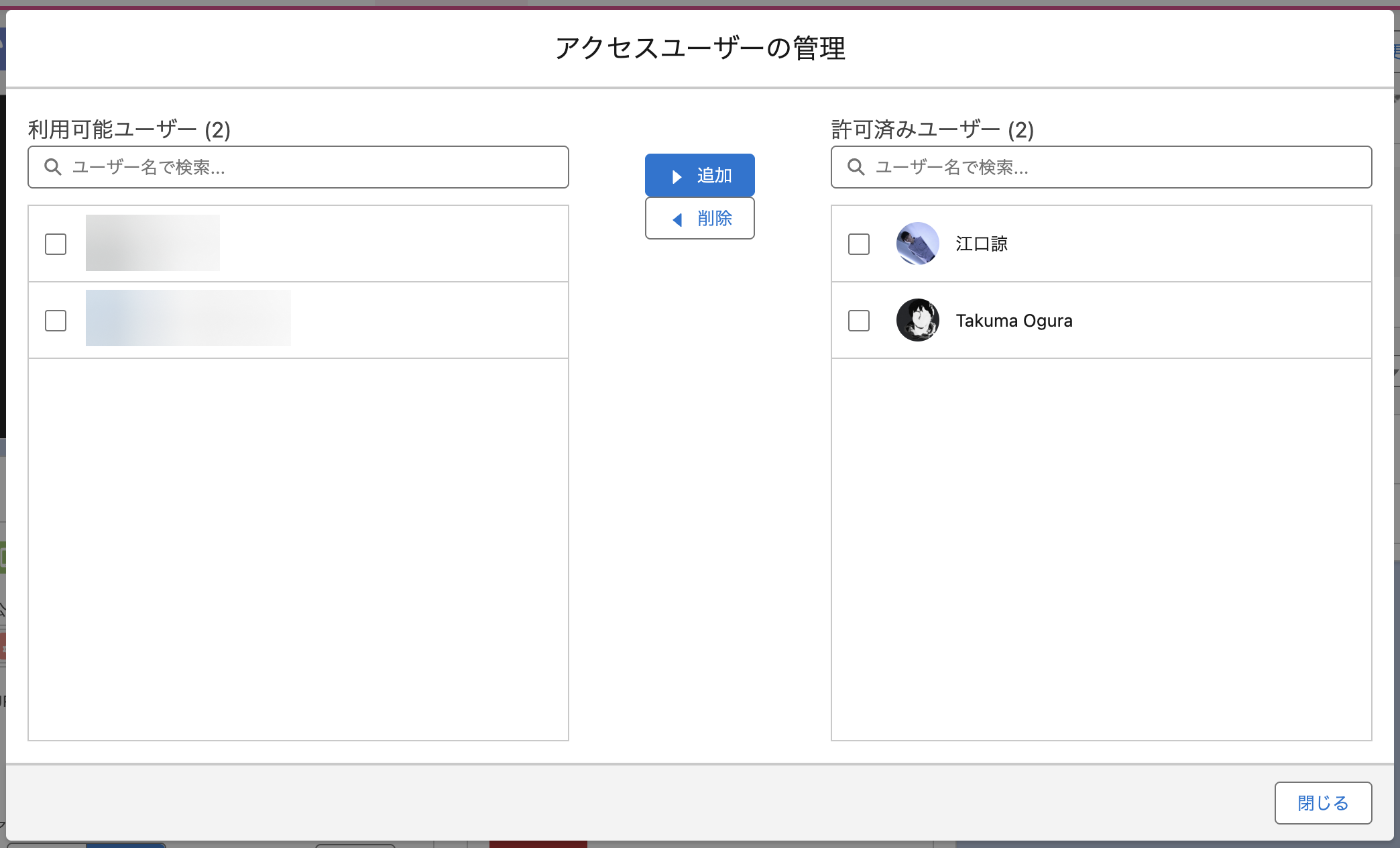 「一部」に設定すると、設定画面上でキャンバスにアクセスできるユーザーを制限することができます。共有設定に追加れたユーザー以外のユーザーには表示されません。