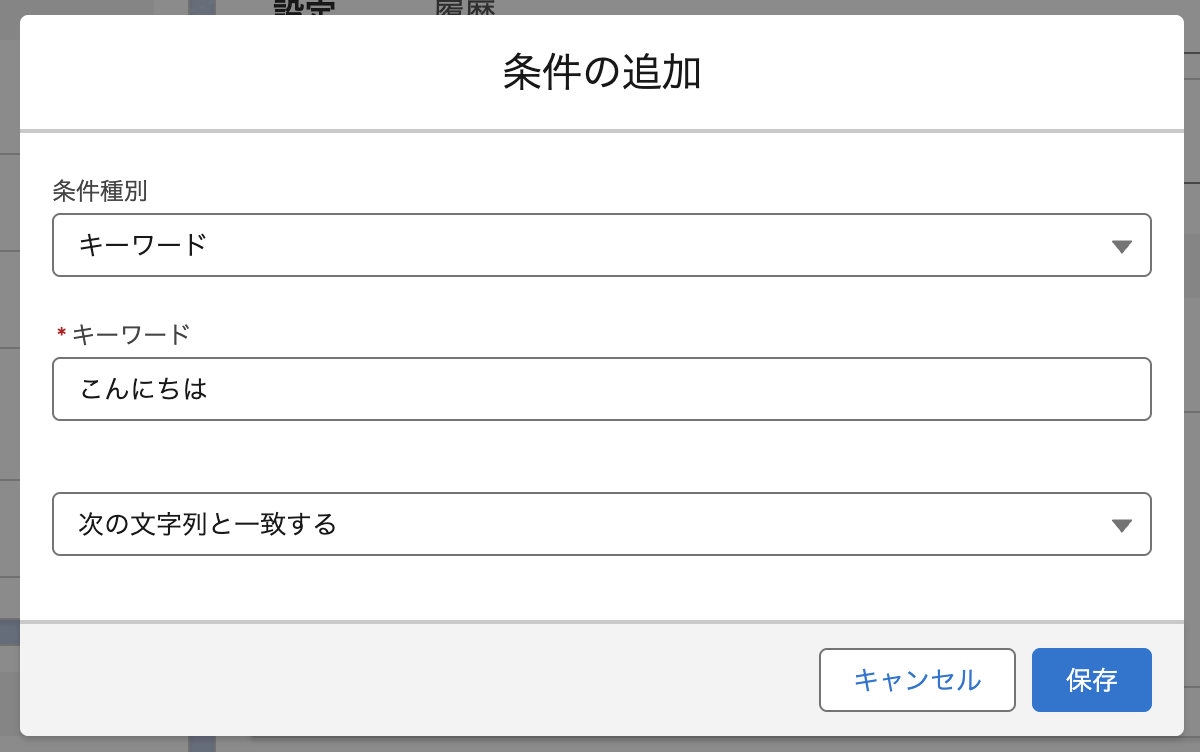 条件は、完全一致と部分一致の2つから選ぶことができます。