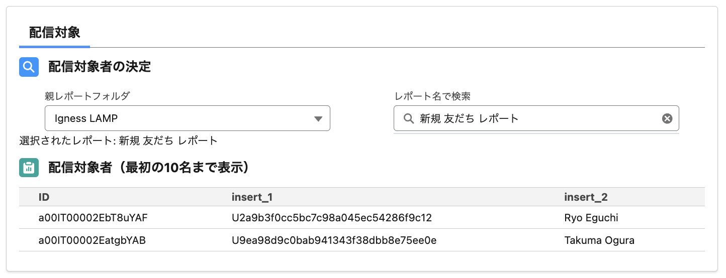 配信対象者は、レポート名を指定します。配信対象者が表示されていますので、レポートの確認を行います。