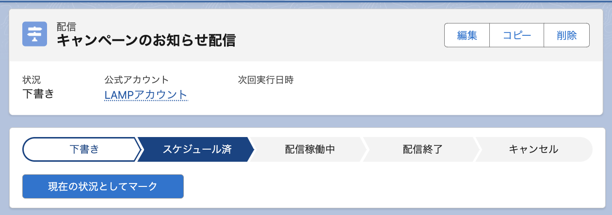 次回実行日時に日付が入ったら、その時間に一斉配信が実行されます 👏