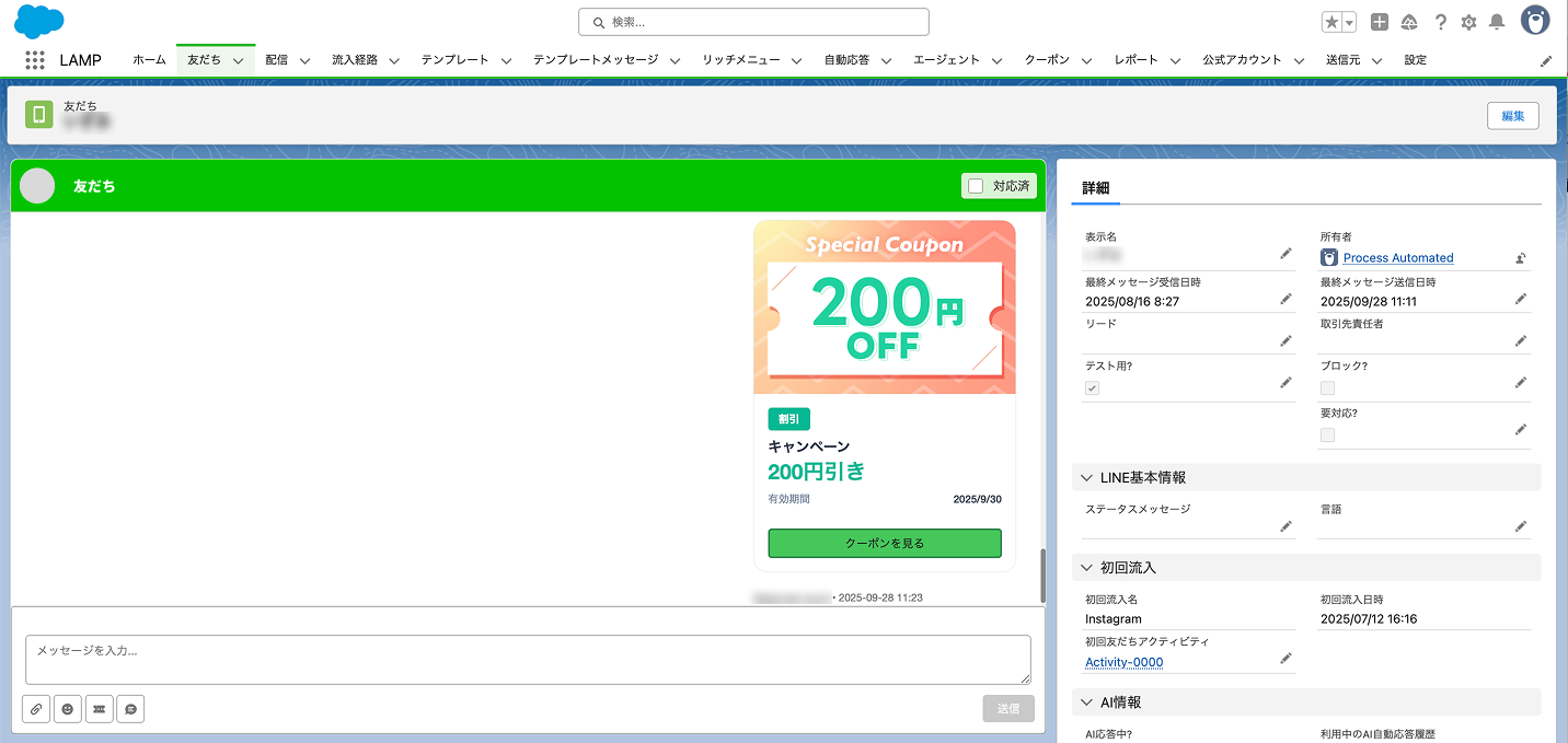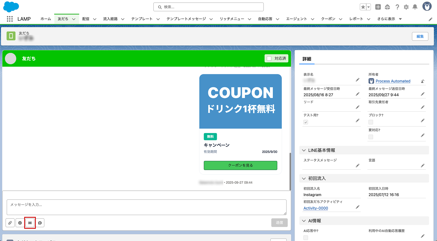 「友だち」タブから1on1メッセージでクーポンを送りたい友だちを選択してください。