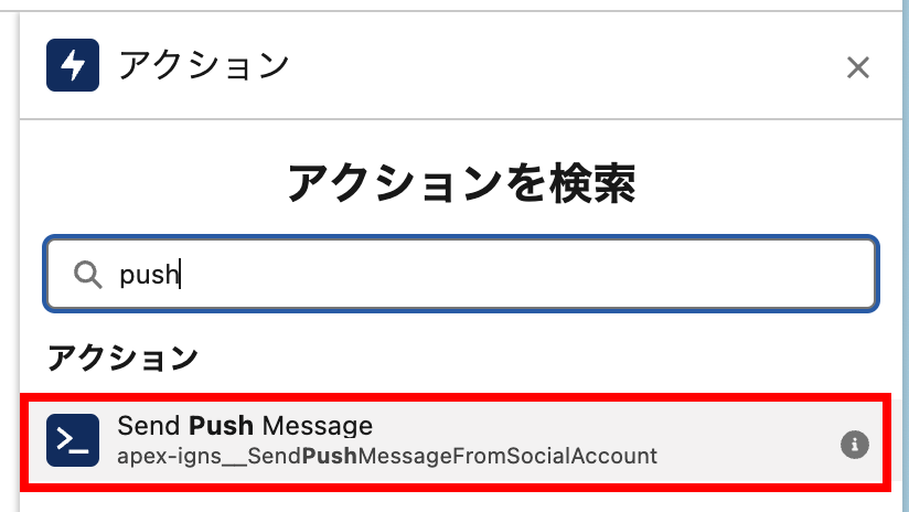 検索ボックスに「push」と入力しm[Send Push Message]を選択します。