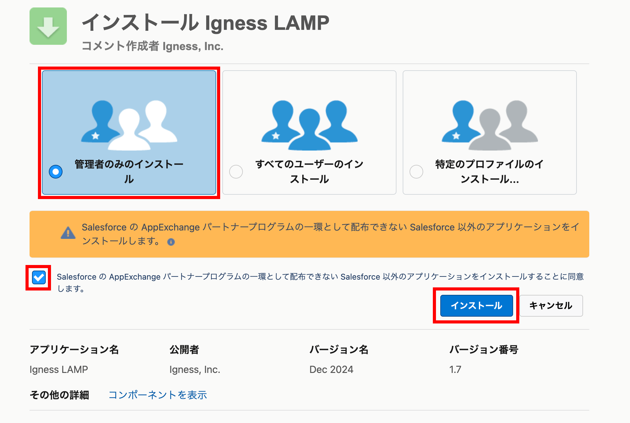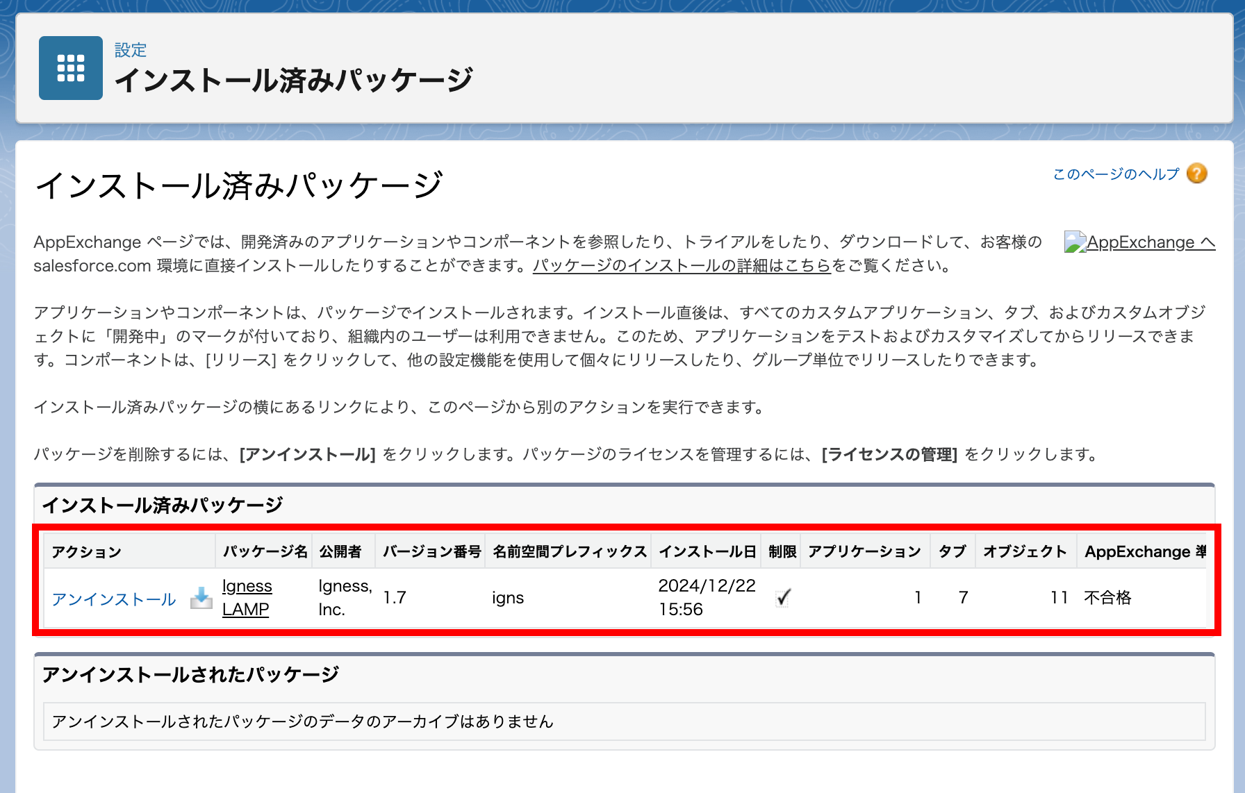 本番組織にIgness LAMPをインストールして使用してください。Sandbox環境でも同じ作業でインストールできます。