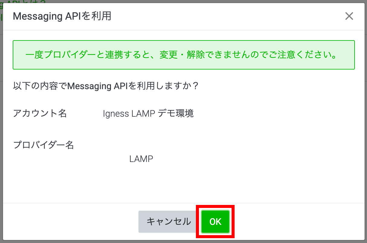 確認画面が表示されるので、OKをクリックしてプロバイダとの連携を進めます。