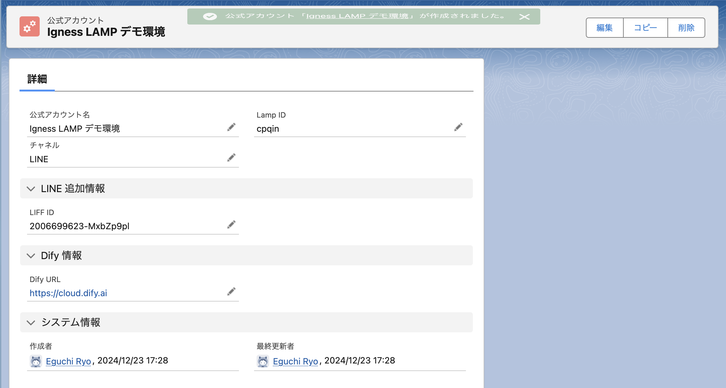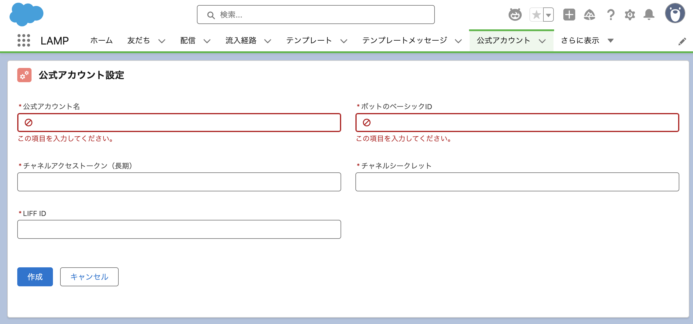 - Salesforce組織への公式アカウント情報の追加