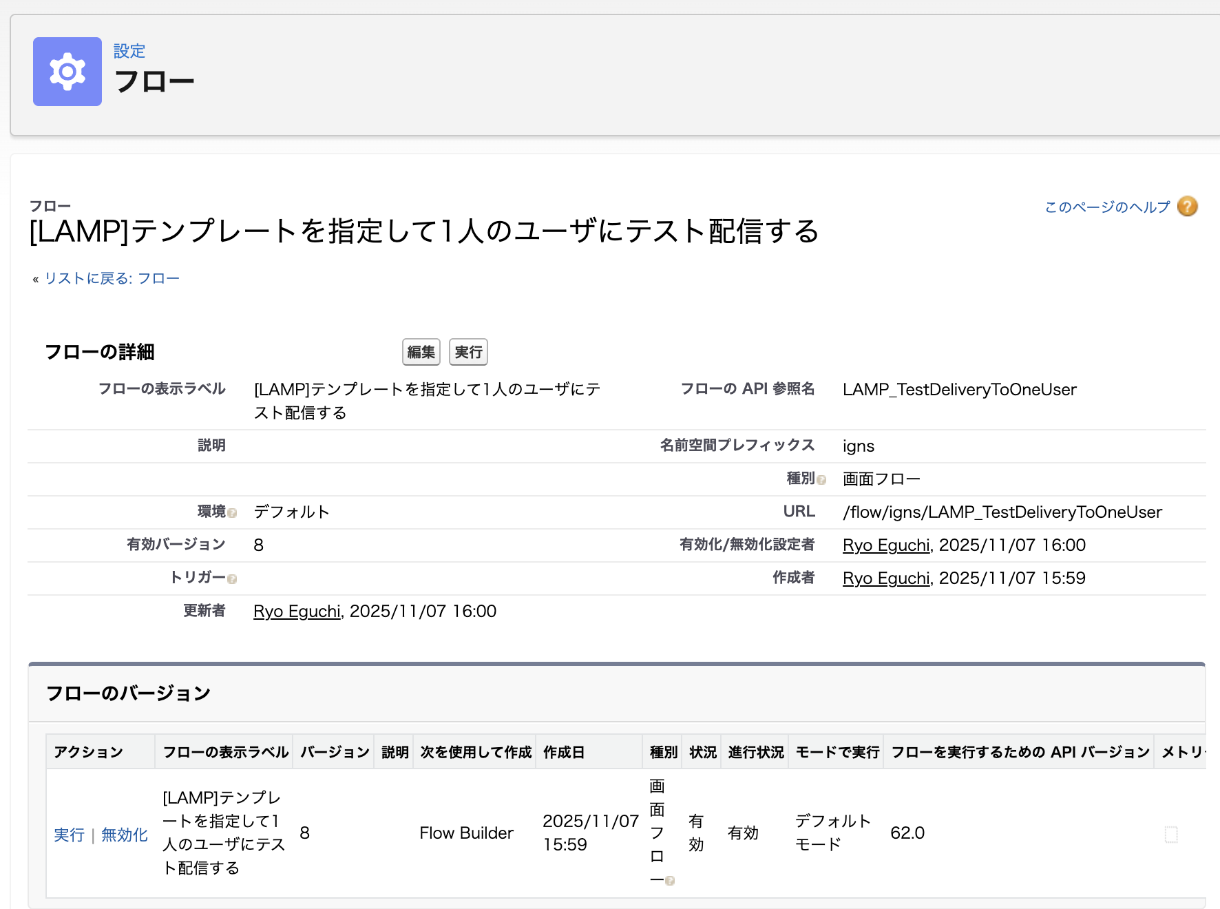 [LAMP]テンプレートを指定して1人のユーザにテスト配信する フローを無効化します。