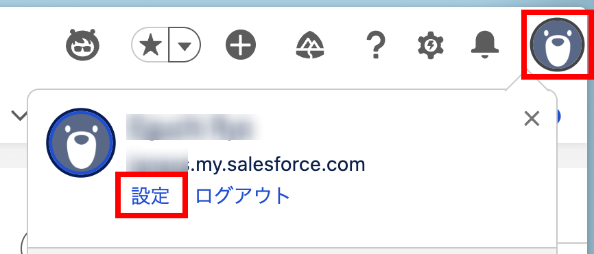 - Salesforce にログインし、右上の画像 (またはアバター) をクリックしてから [設定] をクリックします。