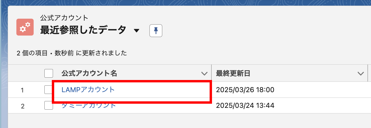「公式アカウント」タブをクリックして、公式アカウント一覧を開きます。