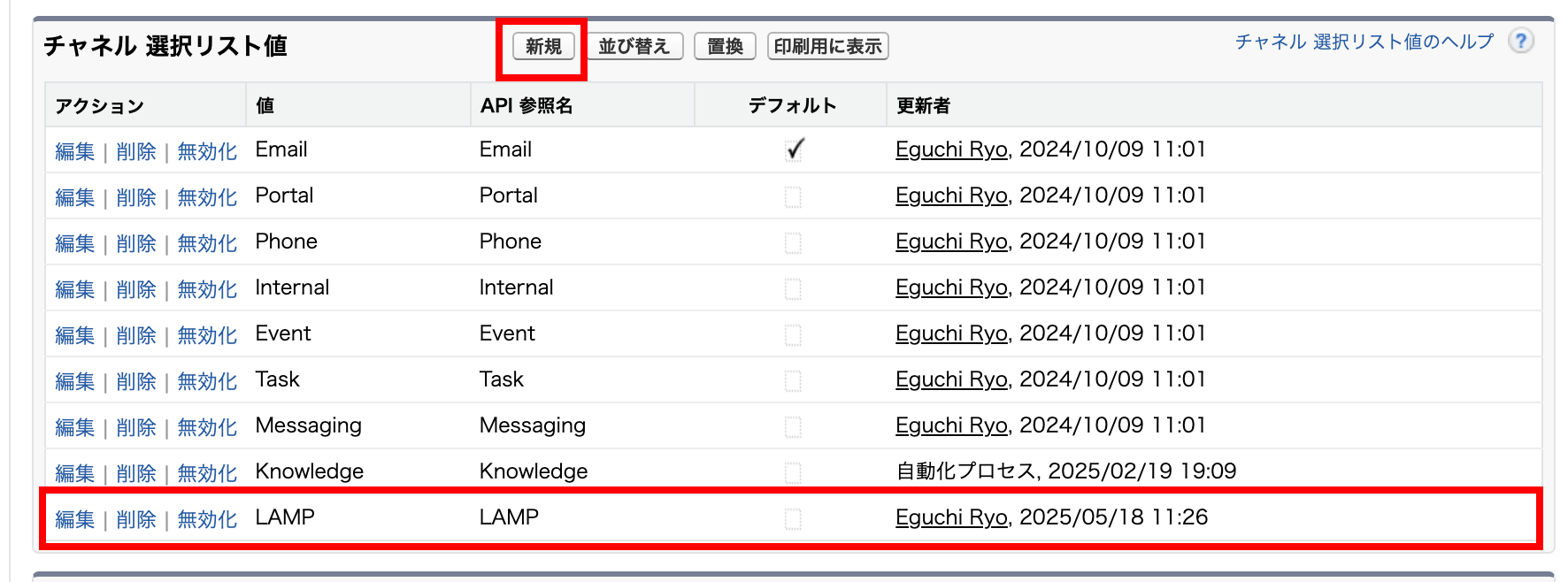 選択リストの追加にて、任意の選択リストを追加します。(例:LAMP)