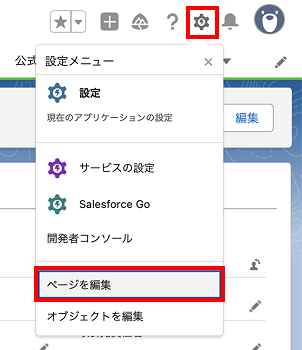 友だちレコードの1つを開き、右上の[設定]→[ページの編集]をクリックします。