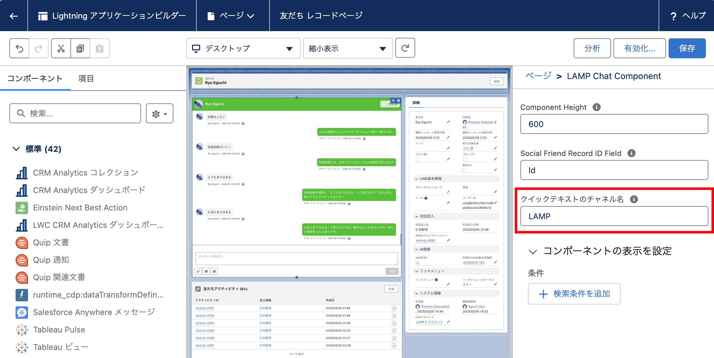 すると、「LAMP Chat Component」の設定画面を開きます。
