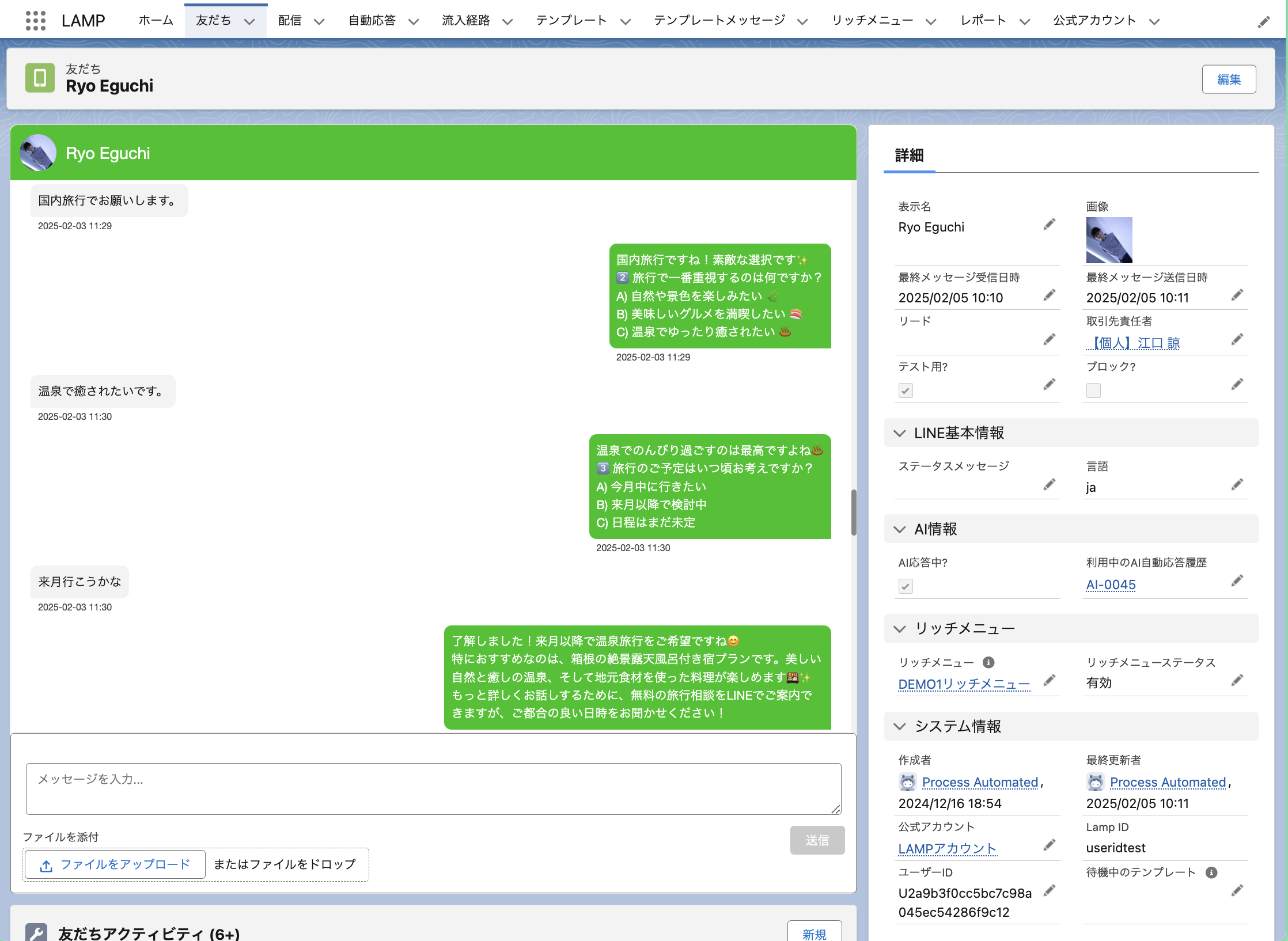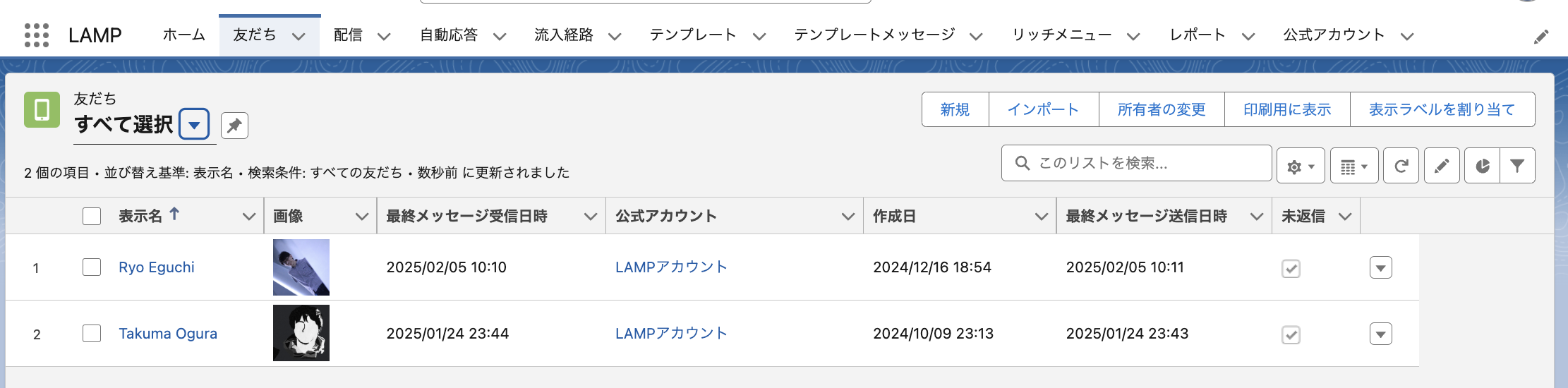 | 最終メッセージ受信日時 | 最後にユーザーからメッセージが受信された日時 |