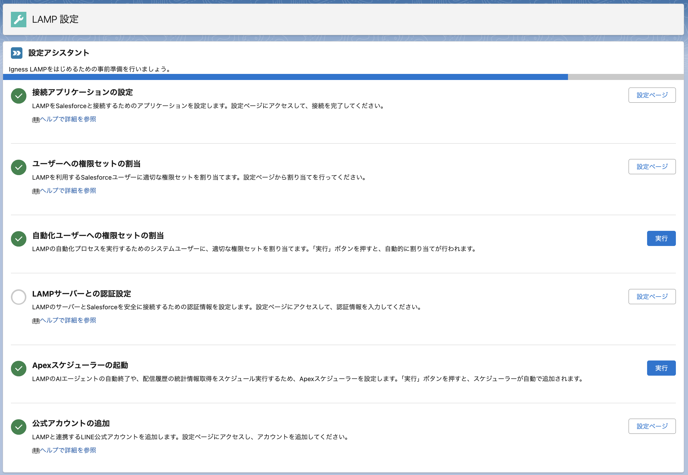 関連ヘルプ- LAMPを利用する際、複雑な権限付与をする必要はありません。権限セットを割り当てるだけで利用できるようになりました。