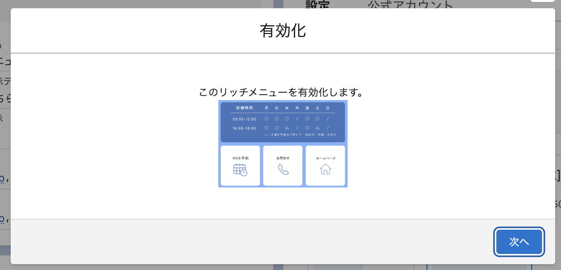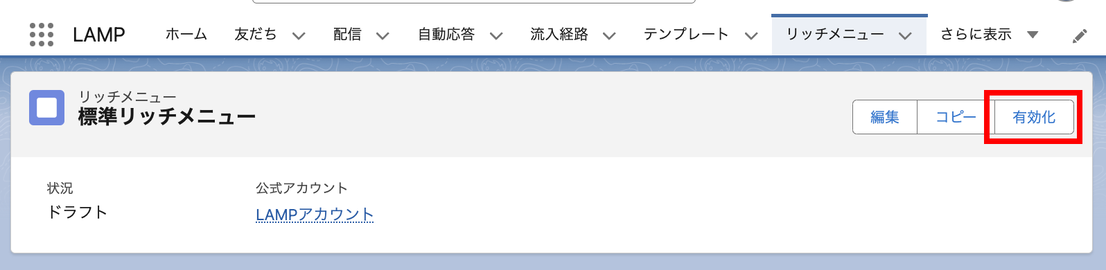 [有効化]ボタンをクリックしてリッチメニューを有効化します。