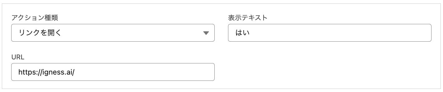 | アクション種類 | ユーザーがタップしたときの動作 |