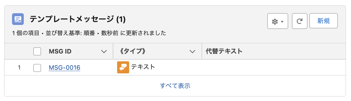 「テンプレートメッセージ」関連リストにレコードが追加されるので、「メッセージID」をクリックして開きます。