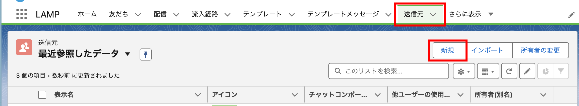 「新規」をクリックし、新規レコードを作成します。