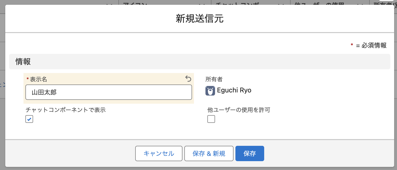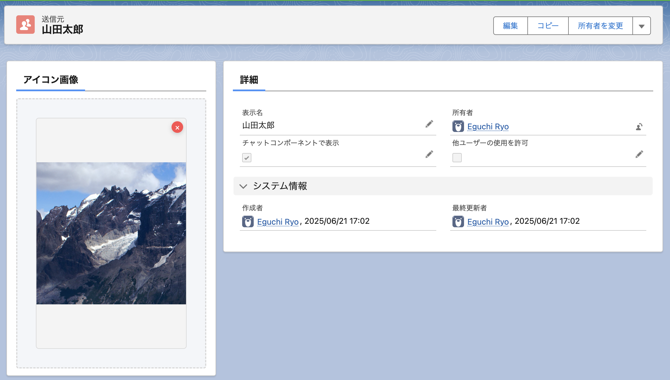 表示名とアイコンの設定