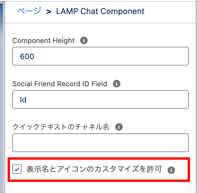Lightning アプリケーションビルダーにて、「表示名とアイコンのカスタマイズを許可」のチェックボックスにチェックを入れ、保存をします。